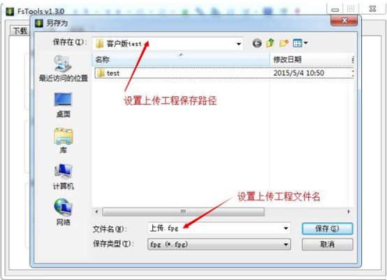 3、選擇工程上傳路徑和保存文件名,點擊”保存