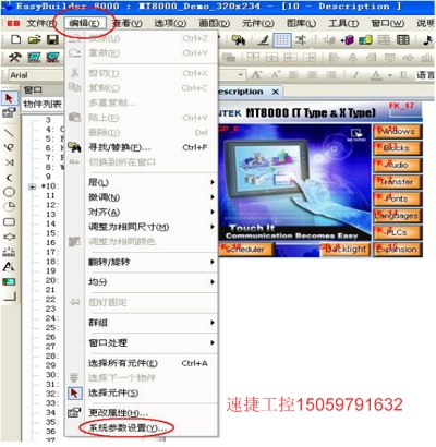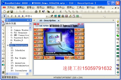 1、 下圖為轉換前的程序畫面,其型號為 MT8056T(320×234)。